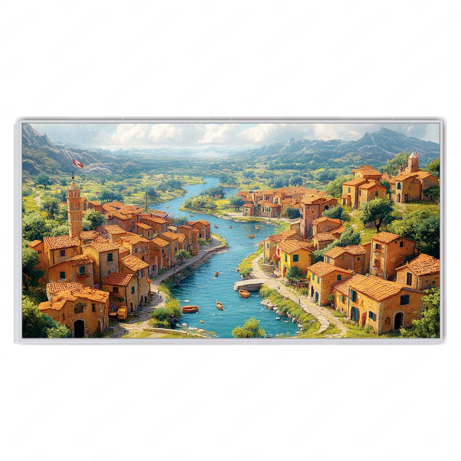 Capture the serene beauty of a rustic riverside village with this expertly crafted canvas wall art, adding peaceful charm and timeless character to any space.