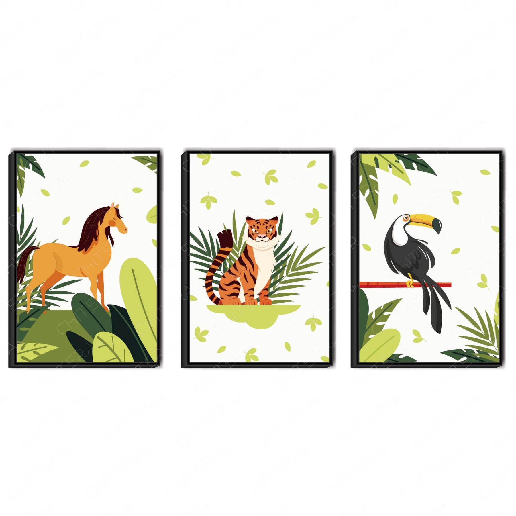 The Jungle Friends Trio Canvas Wall Art brings a harmonious touch of nature into your space with three beautifully coordinated panels. Featuring detailed depictions of diverse jungle animals, this set creates an inviting atmosphere that blends artistry with the charm of wildlife. Expertly printed on quality canvas, each piece offers sharp colors and lasting durability, making it a sophisticated choice for nurseries, living rooms, or offices that benefit from a serene yet engaging ambiance.