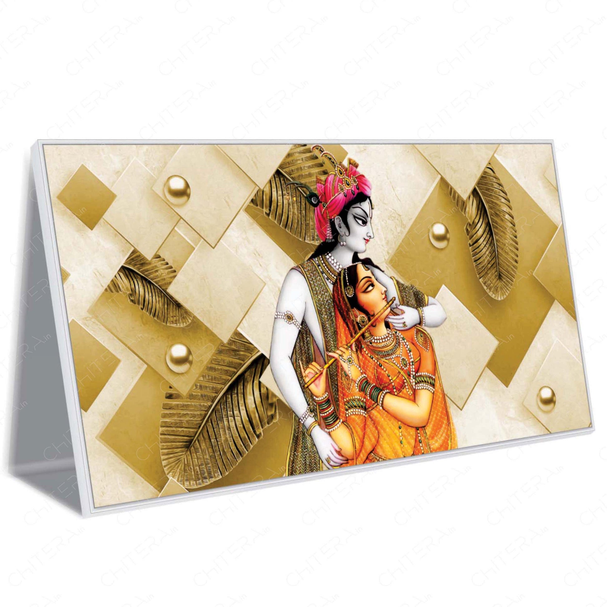 Experience the timeless bond of Radha Krishna illuminated in a golden aura. This canvas wall art combines spiritual elegance with rich tones, enhancing any sacred or living space.