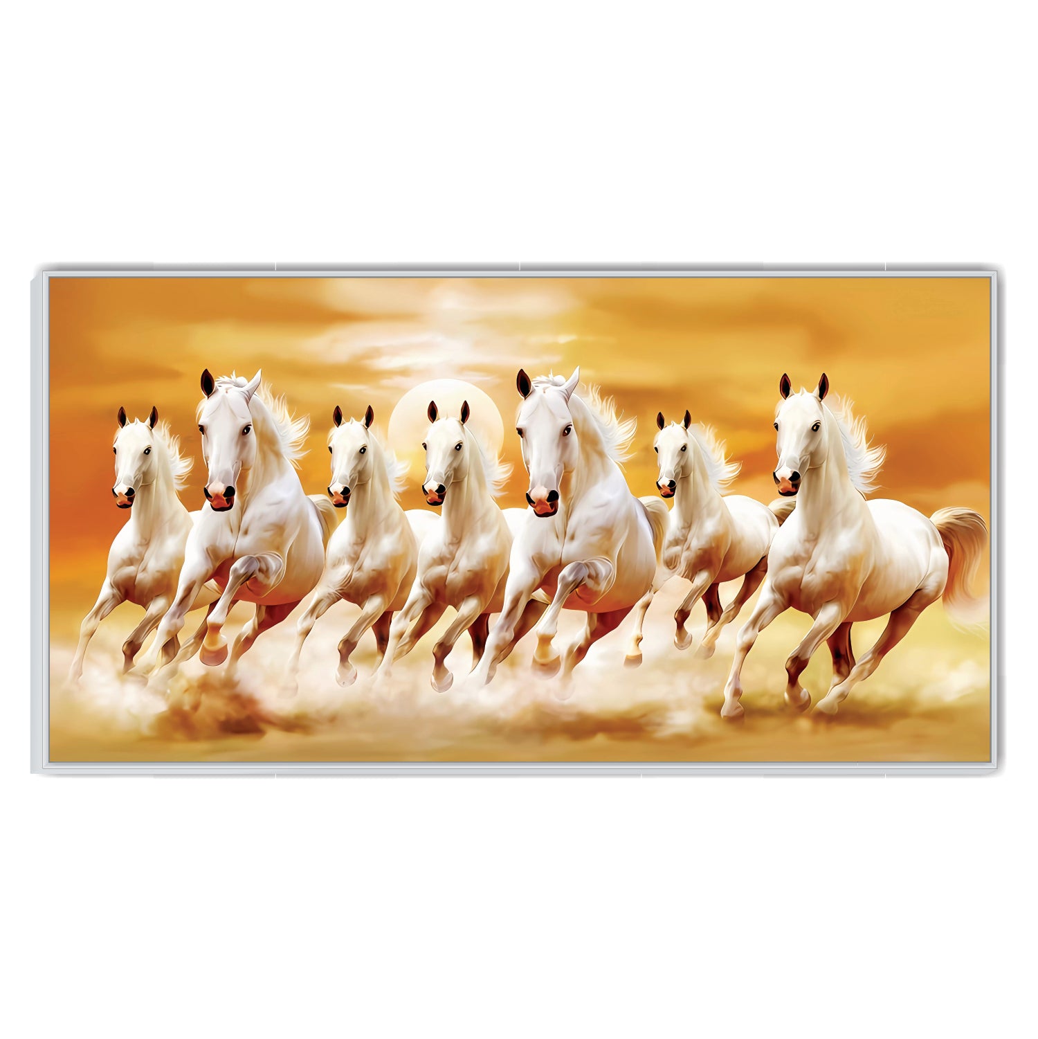 Elevate your space with our Seven Steeds of Light Canvas Wall Art, a sophisticated piece depicting the dynamic movement of horses rendered in luminous tones. This expertly crafted canvas captures the power and grace of these majestic animals, creating a focal point that adds both elegance and energy to any room. The interplay of light and shadow accentuates the horses' muscular forms, making this artwork a compelling addition to both contemporary and traditional interiors.